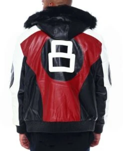 The external side of the Robert Phillipe 8 ball jacket has manufactured by using rich and premium quality of faux leather material. It comes with internal soft and smooth viscose lining that keeps you warm and comfortable the entire time. The Robert Phillipe 8 ball jacket comes in a combo of three color; black, maroon and white. The jacket has a very stylish appearance. 8 ball Robert Phillipe leather jacket comes with rib-knitted style cuffs on full length style sleeves. It has a front ykk branded zipper attached that looks perfect for the conclusion. The jacket has a rib-knitted hemline as well. It has two front side waist pockets where you can keep stuff. The leather jacket comes with an attached fur hood that looks dazzling. The 8 ball logo on the sleeves and back makes the apparel ready to rock.
