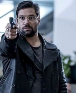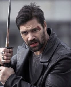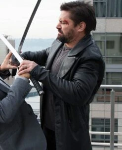 Manu Bennett Beta Test Creed Black Leather Peacoat
