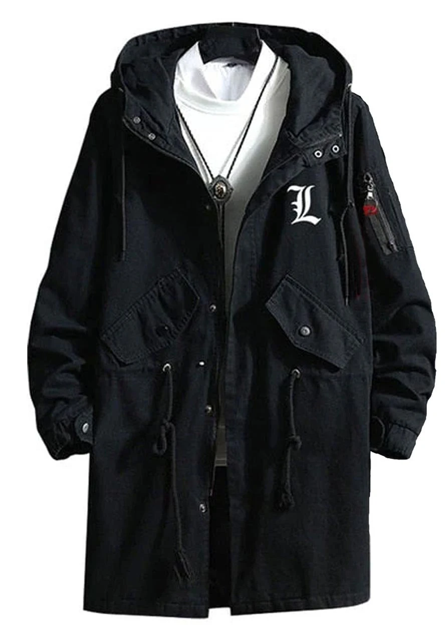 The Death Note Black Coat Has a Catchy Charm That Keeps You Relaxed and Composed Whether You’re Walking Around the City or Going Elsewhere. This Exquisite Coat Has Been Fabricated from Premium-quality Cotton to Make It Lightweight and Wearable in All Seasons, While Its Soft Viscose Inner Will Keep You Comfortable and Moisture-free. The Strong Black Color Will Enhance Your Smartness. The Death Note Hooded Coat Has Been Styled Modishly by Using All Smart Features Like a Hooded Collar, Snap Tab Buttoned With Zippered Closure, and Frontal Flapped Pockets to Make It More Functional. Wearing the Death Note Coat, You Can Give a New Way of Wearing a Cool Look to All Fashion Seekers.