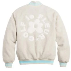 If you want luxurious and elegant looks, then you must go for the golf le fleur varsity jacket. It is such a cozy fashion statement. Its high-quality faux fur makes it smooth and warm. Its soft viscose inner makes it comfortable and sweat-free. The white color makes it unique and catchy. The golf le fleur sherpa varsity jacket has been tailored in a very modish way by using attributes like a rib-knitted stand-up collar, snap tab buttoned closure, rib-knitted cuffs, and hemline and side waist pockets. Now you can enjoy chill days of cold weather while staying warm and cozy and your fashion at a high level just by wearing the golf le fleur sherpa jacket.