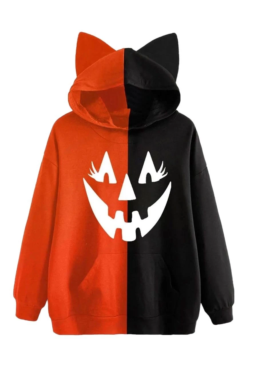 The Halloween Cat Two-tone Hoodie is a Real Treat for the Eyes. It Will Add a Delightful Touch to Your Halloween Look, and You Can Quickly Increase Your Style Followers. Its Premium-quality Fleece Fabrication Makes It Warm and Ageless Along With Its Smooth Viscose Inner Makes It Comfortable and Sweat-free. The combination of Black and Red Color Will Look Fantastic on You. The Halloween Cat Two-tone Fleece Hoodie Has Been Tailored Modishly by Using All Smart Features Like a Hooded Collar, Pullover, Rib-knitted Cuffs and Hemline, and Side Waist Pockets. The Halloween Two-tone Hoodie is as Cool as a Ghostly Breeze on Halloween Night. Now Be a Fashion Icon!