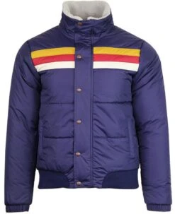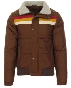 The stylish 70โs jacket has a very trendy look. The various colors combined to make the apparel more desirable are Blue, Brown, Navy Blue which makes the exterior of this jacket very attractive. The outer layer of this ski jacket is fabricated with premium quality polyester fabric. On the internal side of this 70โs jacket is a lining of smooth and soft viscose attached that keeps you warm and comfy. There is a ykk branded zipper attached to the front side of this 70โs jacket along with snap tab style buttons for the closure. 70โs ski jacket has two front waist pockets. The jacket comes with elastic style cuffs on long-length sleeves. It has a shearling-lined shirt-style collar as well. The rib-knitted hemline gives the jacket a fitted look.