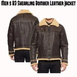 Change your appearance with our b3 bomber jacket. It gives you charismatic personality. Manufactured from high quality genuine leather having viscose lining inner. It has shirt style collar, shearling lining given on collar, cuffs and bottom hem its allure the beauty of the attire and makes it dynamic. There are two stylish pockets present on waist with stitching designing. Menβs shearling bomber jacket has front zip closure while two belt straps are given on the collar. Sleeves are full in length. Perfect stitching on overall body enhances the beauty of the outfit, two adjustable straps also given on waist side. Brown shearling jacket gives you bravo look like champions.