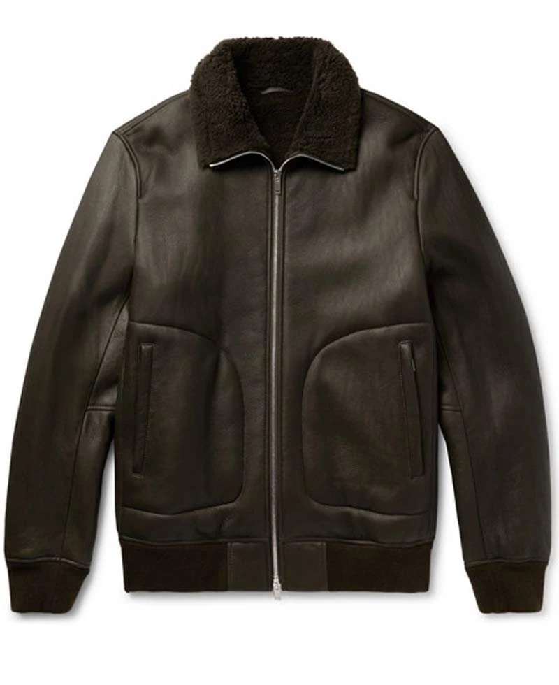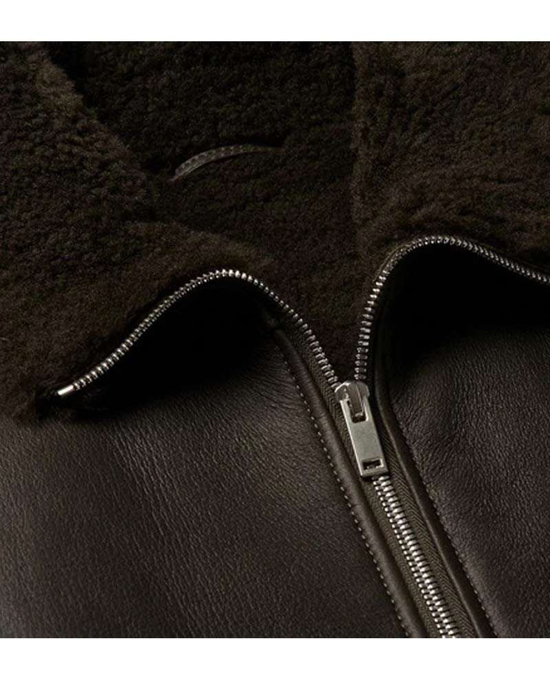 shearling black leather jacket is manufactured from high and durable quality genuine leather material. This jacket will shield you against cold weather and will make you feel warm. This jacket will give you an eye catching and trendy look. The inner soft shearling lining makes this apparel very comfortable to wear. black leather bomber jacket has full length sleeves on rib trim style cuffs. This leather jacket has rib knitted waist hemline as well. There are front side pockets to secure stuff in them. The front ykk branded zipper style closure fits in perfectly with the style of this jacket. This jacket has a shearling shirt style collar. This jacket is now available here in an appealing black color with brown rib and shearling. Order this jacket by just following the given steps. Hurry up and do not waste any further time.