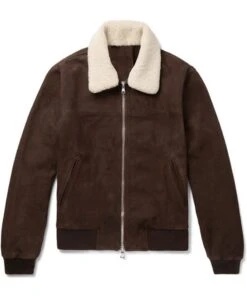 suede bomber jacket mens is fabricated from high and good quality of suede leather material. The long lasting material is used in the manufacturing and is guaranteed. This jacket is very comfortable as it contains inner soft shearling lining. This jacket will guard you against cold climate and will make you feel warm and cozy. shearling trim jacket has full length sleeves on rib knitted cuffs. This jacket has front shearling shirt style collar. The front ykk branded zipper style closure is making this jacket more attractive. This jacket has a rib knitted hemline as well. This jacket has front side pockets in which you can secure your stuff. You will love the detailing of this jacket. You can wear this jacket casually or can also carry this for an occasion. This jacket is available here in a brown color. Order this jacket right now and get your hands on it.