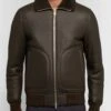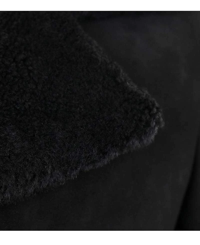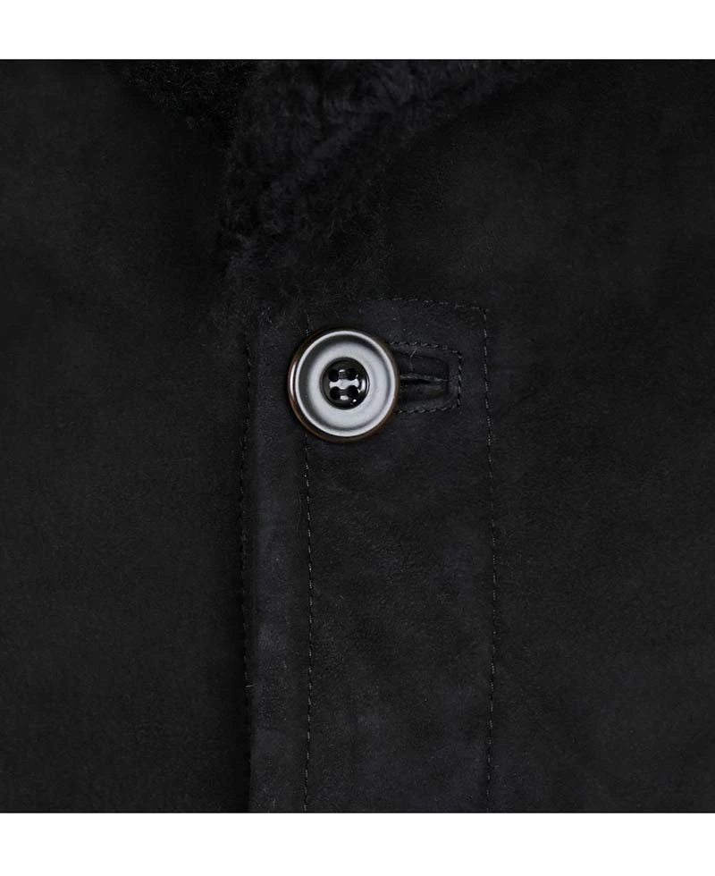 Men’s Shearling Black Suede Leather Coat with Fur Collar