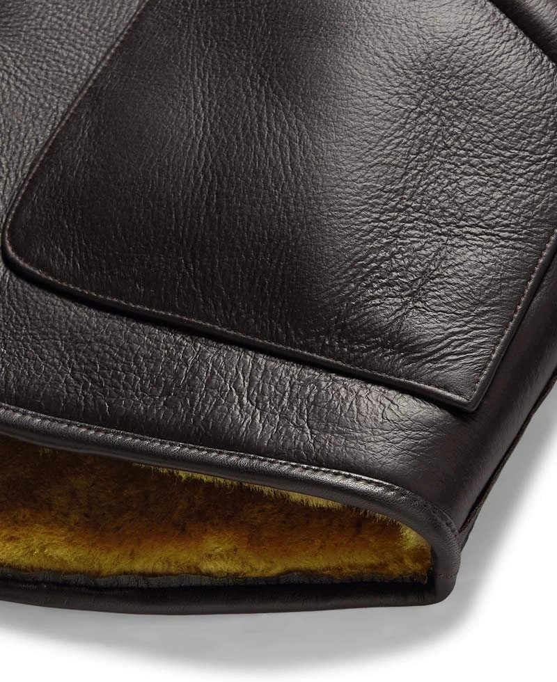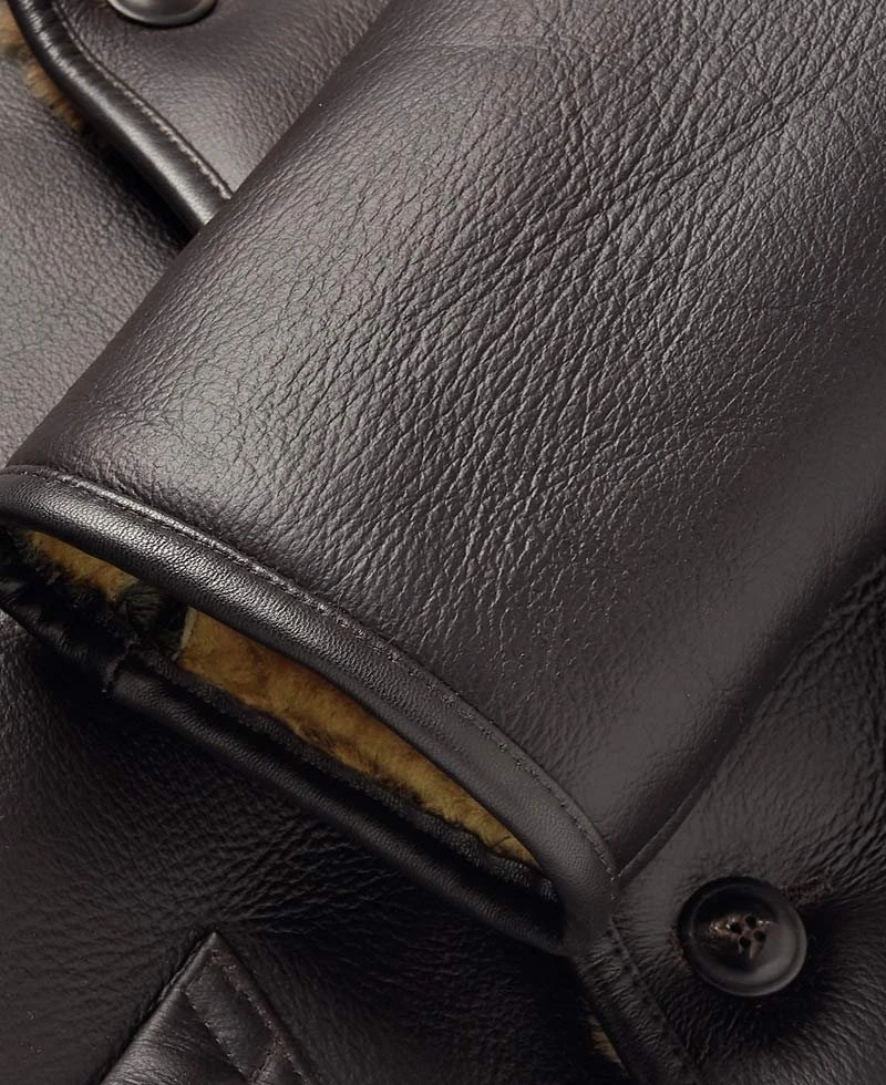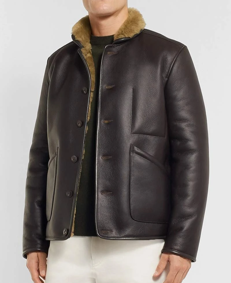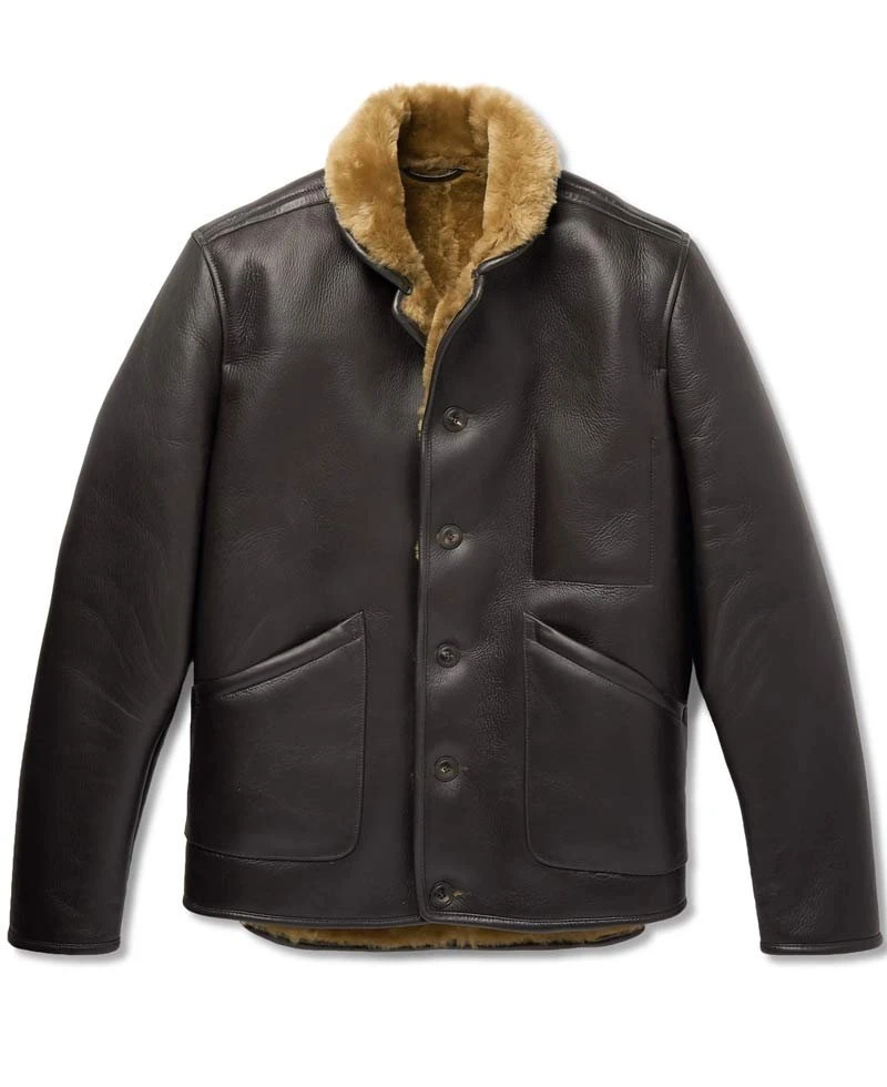 shearling lined leather jacket is manufactured from high and good quality of genuine leather material. The long-lasting material is used in the formation and is assured. This jacket is very comfortable as it contains an inner soft shearling lining. This jacket will guard you against cold climate and will make you feel warm and cozy.shearling brown leather jacket has full length sleeves with open hem cuffs. This leather jacket has front button style closure that fits in perfectly with the style of this jacket. This jacket has shirt style collar. There are two front pockets in which you can secure your stuff. You will admire each detailing on this jacket. You can carry this jacket informally or can also carry this for an event. This jacket is available here in brown color. Order this jacket right now and get your hands on it.