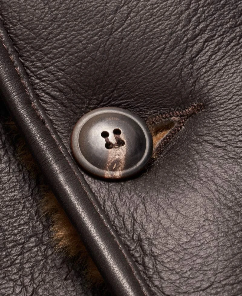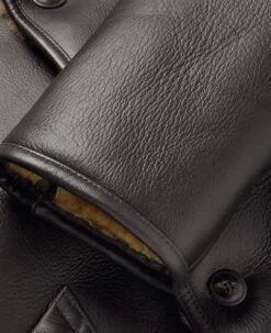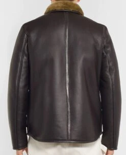 Men’s Button Closure Shearling Lined Dark Brown Leather Jacket