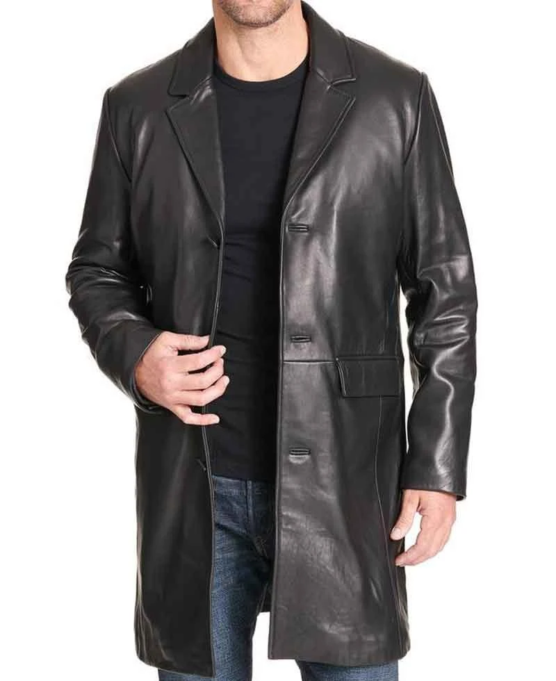 mens leather topper coat is manufactured from high and lasting quality of material. The material used in the fabrication of this coat is high quality genuine leather. This coat will surely guard you against cold weather and will make you feel warm and cozy. The inner soft viscose lining of this coat is the reason why this coat is so comfortable to wear. mens leather topper coat has front button style closure with three buttons that looks perfect on the coat style. This coat has a notch style collar. This coat has full length sleeves with buttons on the cuffs. There are pockets at front on sides with flaps in which you can keep your stuff. This coat is long in length. This coat is available here in black color. You will love and no doubt love the detailing done on this coat. Order now and grab your pieces.
