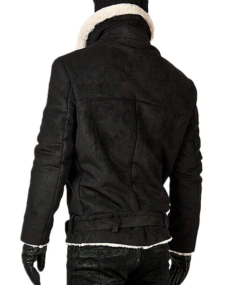 Men’s Double Face Asymmetrical Diagonal Zipper Suede Black Jacket