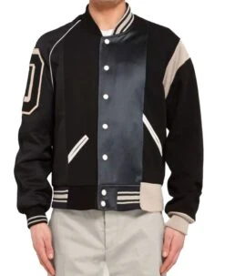The stylish and very classy Maison Margiela varsity jacket has an attractive black color. The outer area of this varsity jacket is fabricated with cotton, wool, and satin fabric of rich and premium quality. On the internal side of this varsity bomber jacket is a lining of smooth and soft viscose attached that makes you comfortable and keeps you warm against cold weather. The jacket has buttons attached to its front side for closure. The Maison Margiela bomber jacket has an erect style collar. The jacket comes with a rib knitted hemline that gives it a fitted look. The Maison Margiela varsity jacket has two front waist pockets where you can secure stuff. The jacket has rib-knitted style cuffs on full length style sleeves as well.
