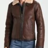 mens brown leather jacket with fur collar is manufactured from high and good quality of genuine leather material. The long-lasting material is used in the formation and is assured. This jacket is very comfortable as it contains an inner soft shearling lining. This jacket will guard you against cold climate and will make you feel warm and cozy.shearling jacket with fur collar has front ykk branded zipper style closure. This leather jacket has shearling shirt style collar. This jacket has front flap waist pockets. You will admire each detailing on this jacket. You can carry this jacket informally or can also carry this for an event. This jacket is available here in brown color. Order this jacket right now and get your hands on it.