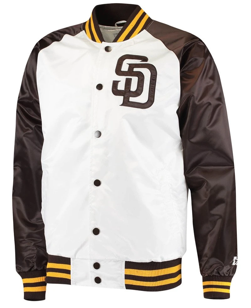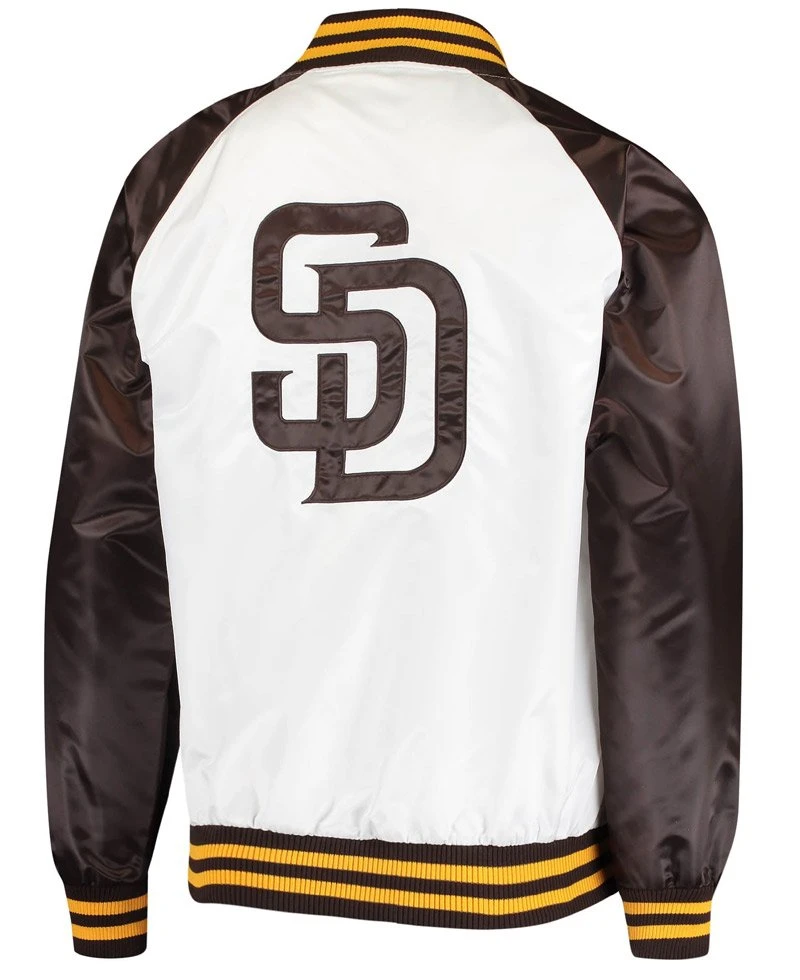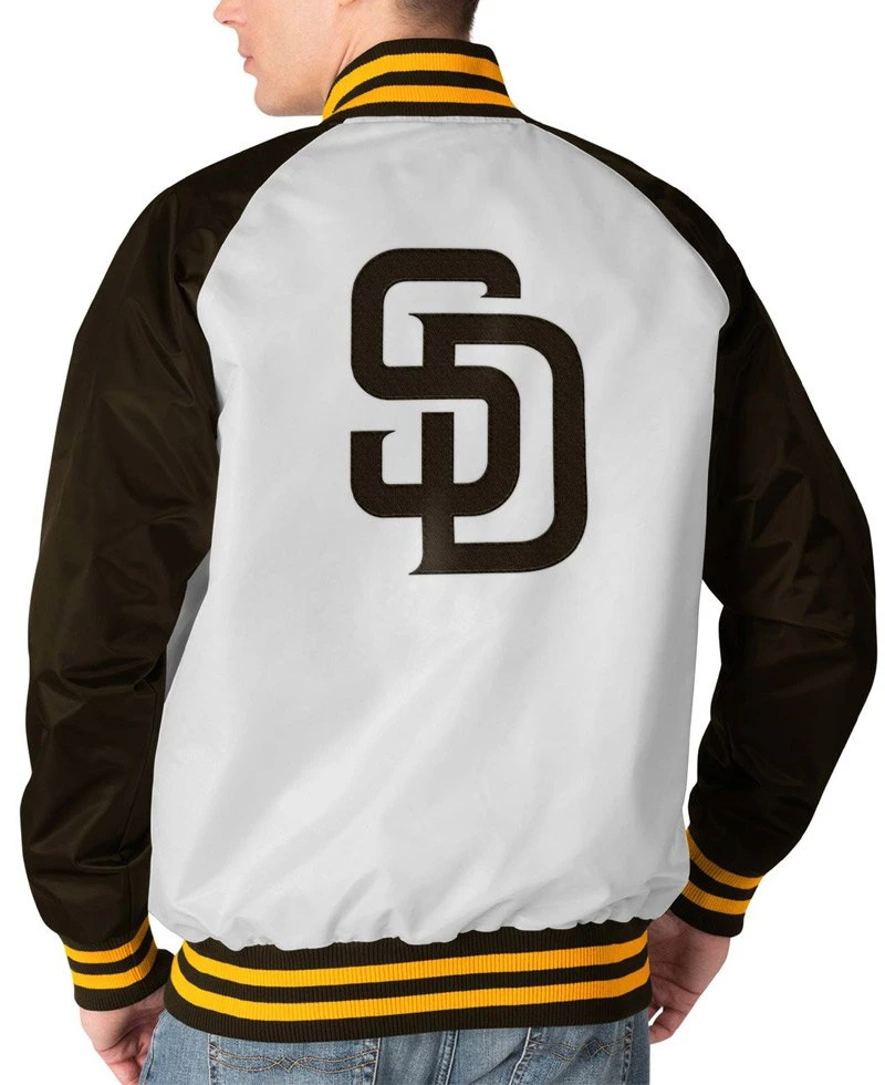 Men’s Padres San Diego SD Satin Varsity White and Brown Jacket
