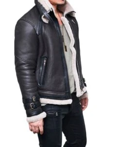 Sheepskin shearling jacket has been fabricated in genuine leather with shearling lining gives you glamorous look also keep you warm. Detachable double belted collar is provided on front with zip fastening closure, you can also make it lapel collar. There are two zipper pockets on chest along zip closure. Double collar jacket has full sleeves with double belted straps make it fascinate. The actual beauty lies in black color.