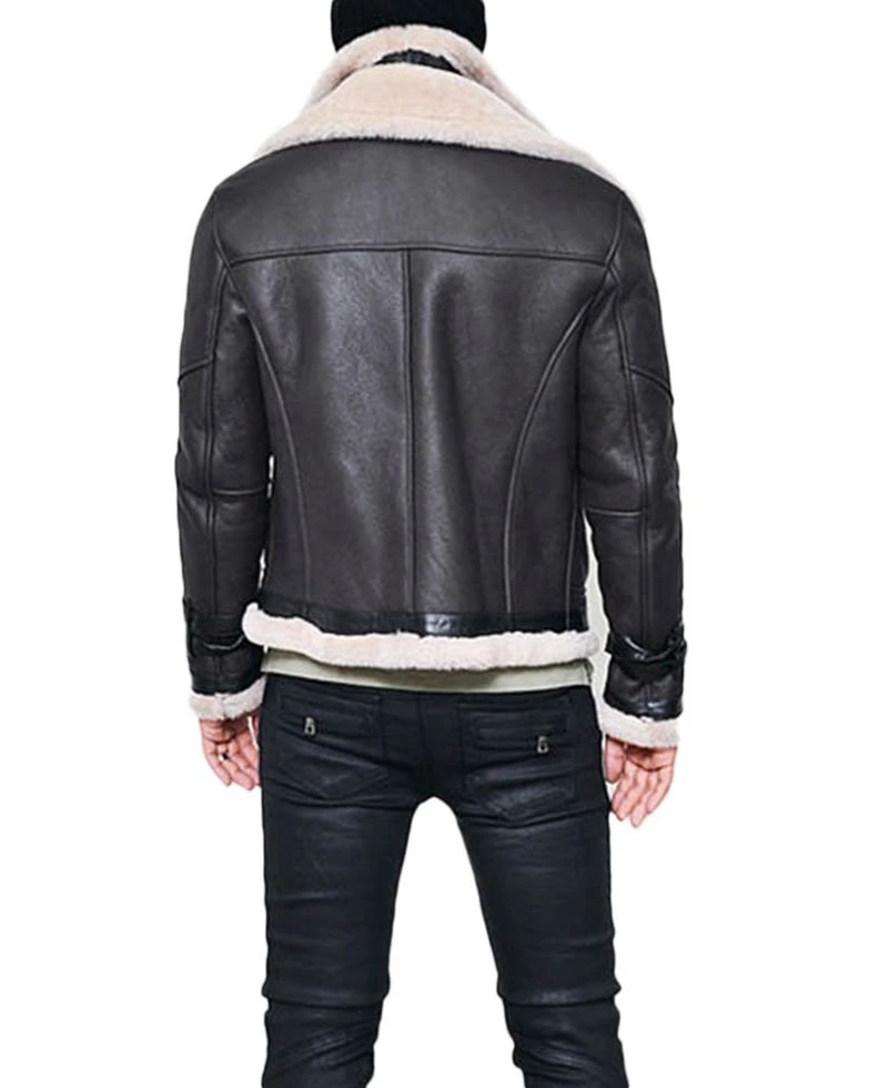 Men’s Belted Double Collar Sheepskin Shearling Leather Jacket