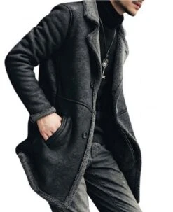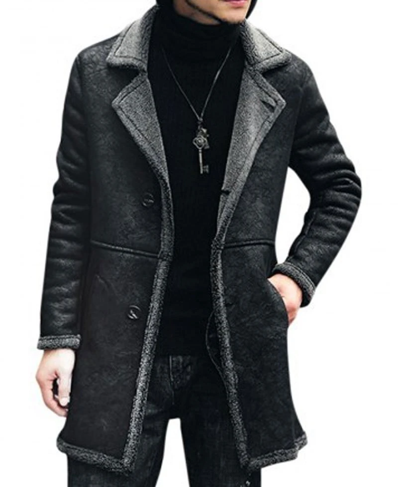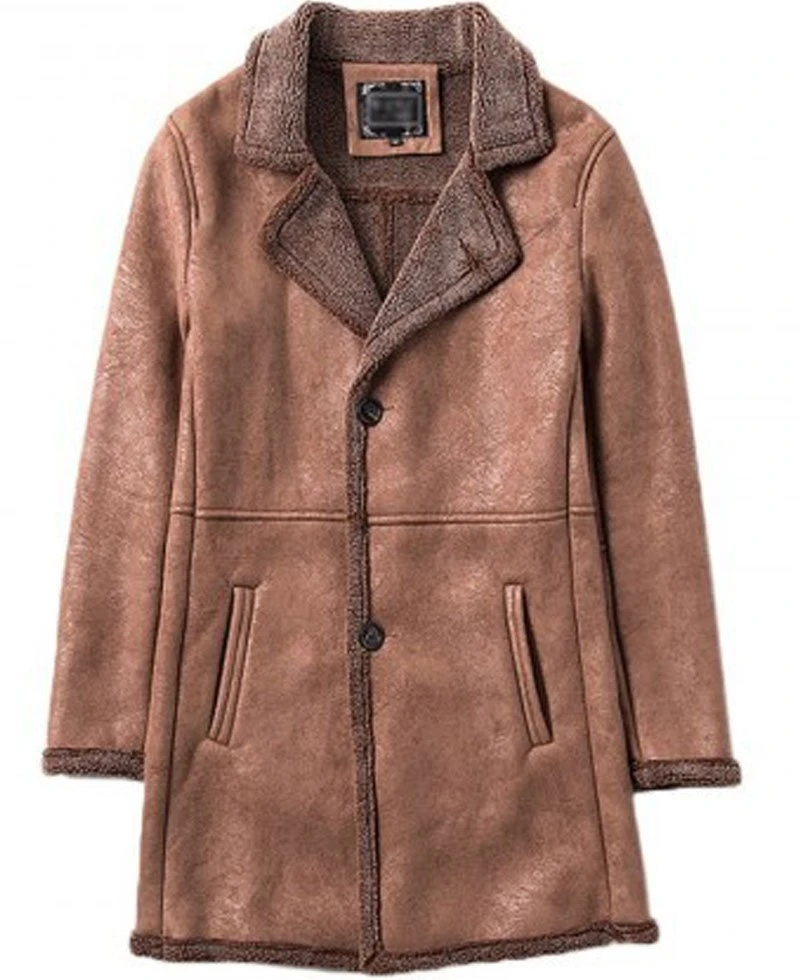 The very classy and attractive menās mid-length shearling coat comes in a mesmerizing brown color. The outer layer of this trench coat is manufactured with premium quality genuine leather material. Soft and smooth faux shearling lining is used for the internal fabrication of this apparel. The menās mid-length shearling coat has buttons attached to its front side for closure. The shearling-lined notch lapel style collar looks so good on this coat. The fine quality stitching of this coat makes it durable to wear. The Leather and fur trench coat has two front waist pockets where you can secure stuff. It has shearling-lined open hem style cuffs on full-length style sleeves. This trench coat is perfect for parties and outings. It has a very sophisticated appearance.