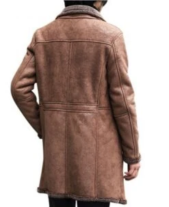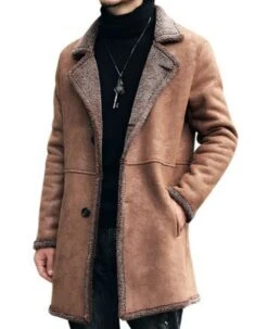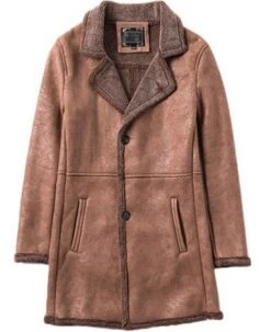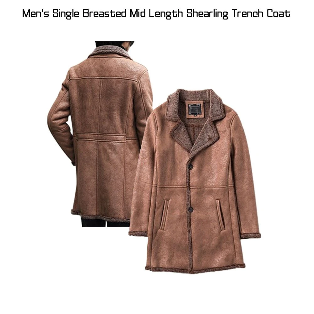 Men’s Shearling Single Breasted Mid Length Brown Leather Coat