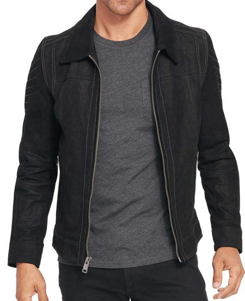 suede black jacket with hoodie is fabricated from high and durable quality of suede leather material. This jacket has material quality that lasts long. This jacket will guard you against cold weather and will make you feel warm and cozy. This jacket is very comfortable that you can wear it all day long because it contains inner soft viscose lining. suede black jacket with hoodie that is manufactured from high quality of fleece material. This jacket has full length sleeves on snap cuffs. The front ykk branded zipper style closure of this leather jacket is worth the price. This jacket has two front zipper pockets to secure valuable stuff in them. This jacket has a shirt style collar. You can get this jacket in black color. You will love the detailing of this leather jacket. Follow the details and order this jacket. We assure you that you will not regret once after buying this jacket.