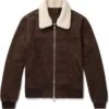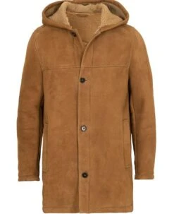 Men’s Winter Wear Suede Brown Leather Shearling Coat with Hoodie
