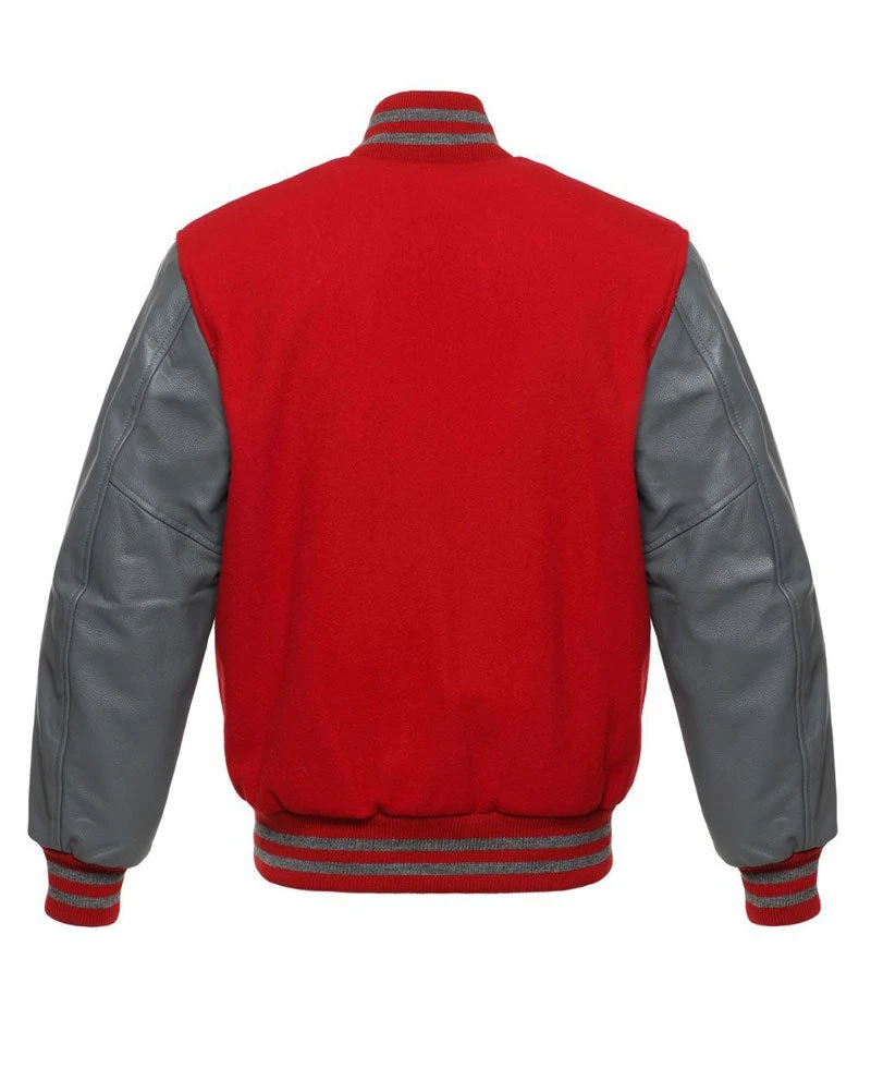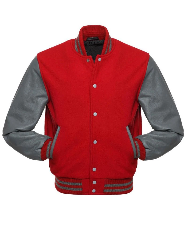 Men’s Varsity Wool Red and Grey Leather Jacket