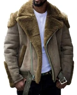 The stylish and appealing men’s belted suede shearling leather jacket is perfect winter apparel. It will look so classy for parties and outings. The external side of this jacket is manufactured with the top quality suede leather material. On the inner side of this jacket is a lining of smooth and soft faux shearling lining that keeps you warm and comfortable all the time. Men’s belted suede shearling leather jacket has a ykk branded zipper on its front side for the closure. The shearling-lined peak lapel style collar makes the appearance of this jacket more desirable. The jacket has open hem shearling-lined cuffs on long length style sleeves. There are two front waist pockets on this leather jacket where you can secure stuff. The jacket has an appealing camel brown color.