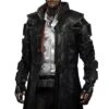 Men’s Black Leather Zipper Pockets Jacket with Brown Faux Fur Collar