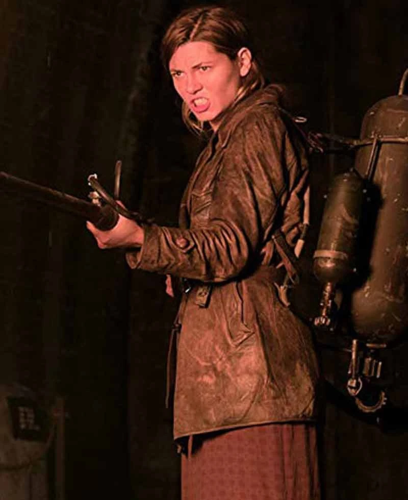 Mathilde Ollivier Overlord Movie Chloe Distressed Brown Leather Jacket