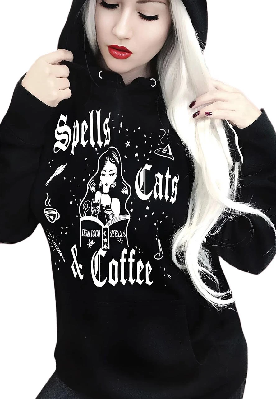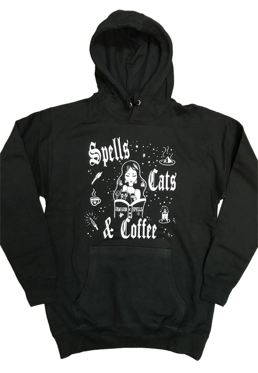 Spells Cats And Coffee Boyfriend Fit Halloween Hoodie