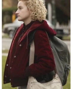 The Americans in a famous and top-rated television drama series where the pretty and exceptional actress Julia garner wore this red velvet hoodie when she was playing the character of Kimberly Breland. This Kimberly Breland jacket is made from top quality velvet material and comes with soft and comfortable internal lining of faux fur. It has red vibrant color. The American Julia garner red jacket has front buttoned style closing. This appealing jacket has front two side waist pockets for keeping stuff. The jacket has rib knitted cuffs on long length slim sleeves. A hoodie with drawstrings is attached to this mesmerizing jacket.