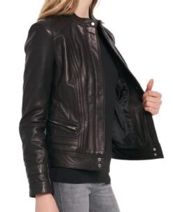 Women’s Causal Wear Designer Black Rivet Scuba Leather Jacket