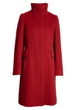 The Women’s Stand Collar Akris Punto Red Coat Will Add Elegance and Warmth to Your Winter Ensemble While Keeping Your Style at a High Level of Fashion. It is Made to Be Comfortable for Chilly Days and Nights. This Dapper Coat Has Been Fabricated by Premium-quality Wool to Make It Warm and Ageless, While Its Soft Viscose Inner Makes It Sweat-free and Comfortable to Wear. The Elegant Red Color Will Enhance Your Beauty. The Women’s Stand Collar Coat Has Been Designed by Using Smart Features Like a Stand-up Collar, Hook Closure, and Side Waist Pockets to Keep Your Small Accessories. The Akris Punto Wool Coat Will Radiate Confidence as You Go Out.