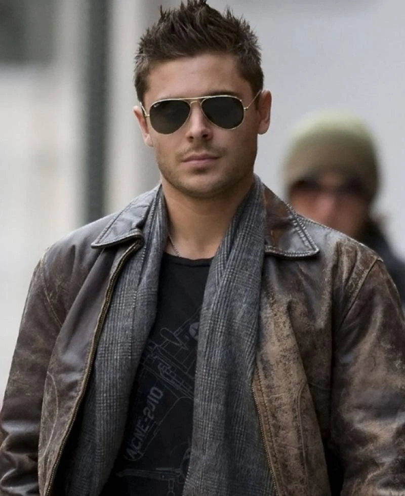 New Year’s Eve Zac Efron Distressed Brown Leather Jacket
